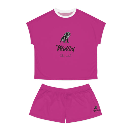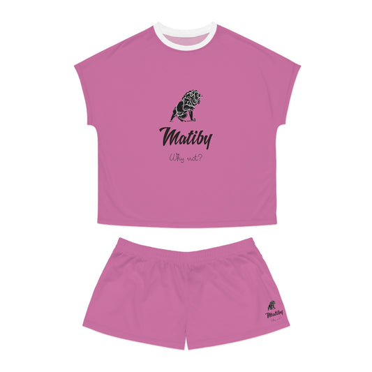 Matiby Lion Women's Pink Short Pajama Set (AOP)