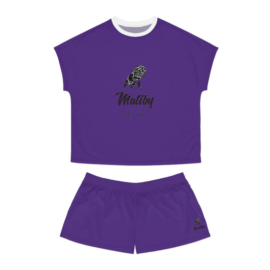 Matiby Lion Women's Purple Short Pajama Set (AOP)